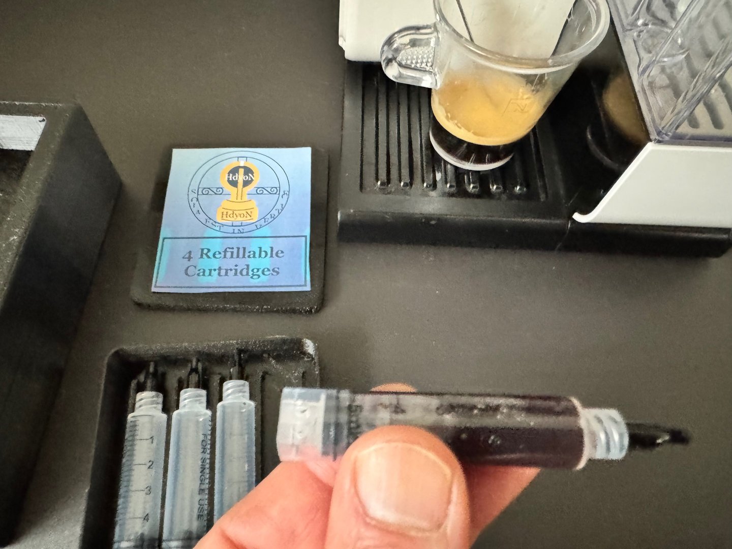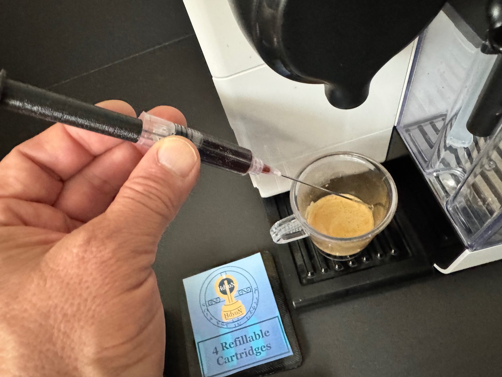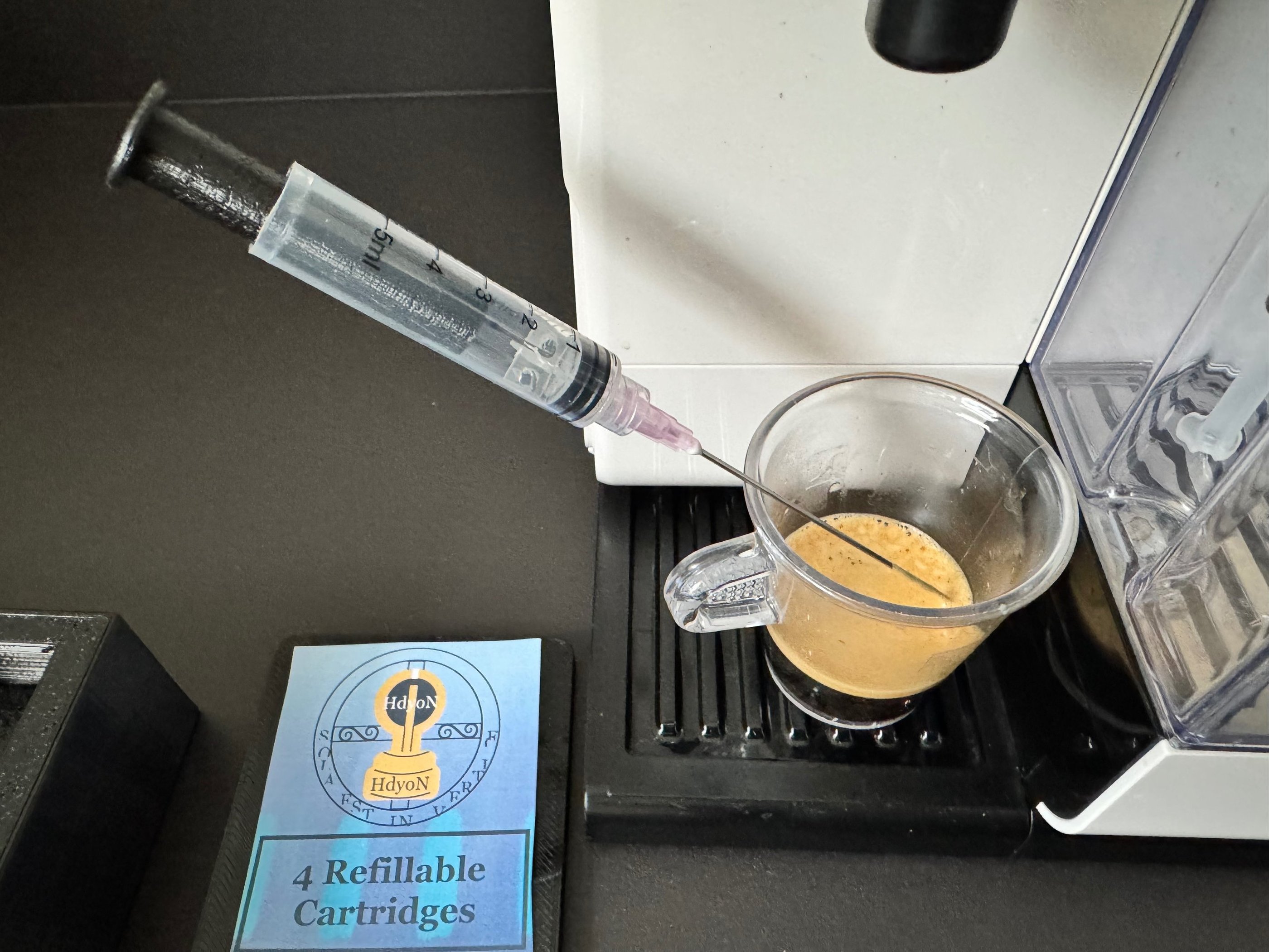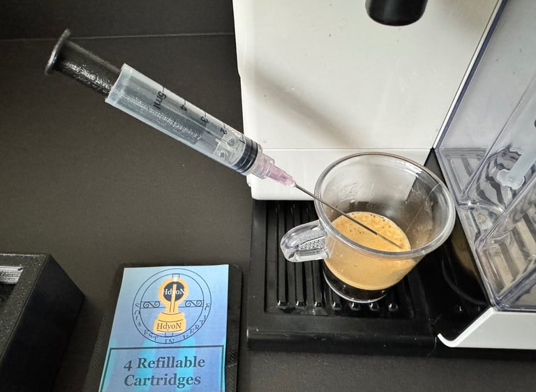 This tutorial teach you how refill a Hdyon Cartridge with Espresso Coffee