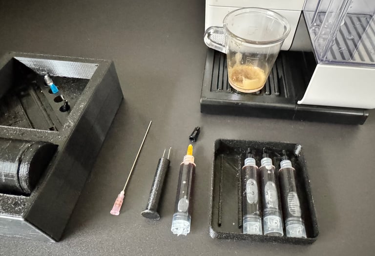 Fill the cartridge with The extracted Ristretto. Repeat and fill 4 -5 Cartridges with 25 ml of Ristretto.